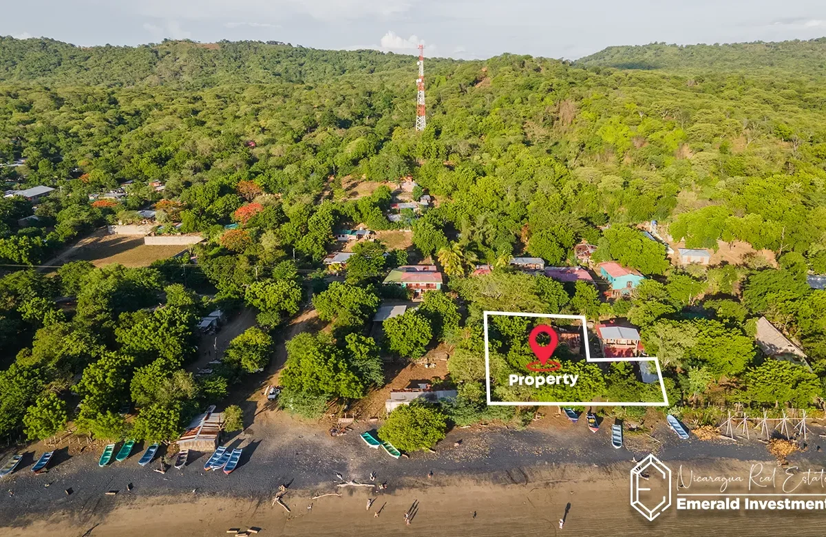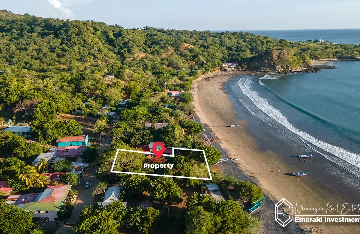 Ownership is arriendo (municipal lease), which is standard for most beachfront properties in Nicaragua and allows for legal use, development, and long-term operation.