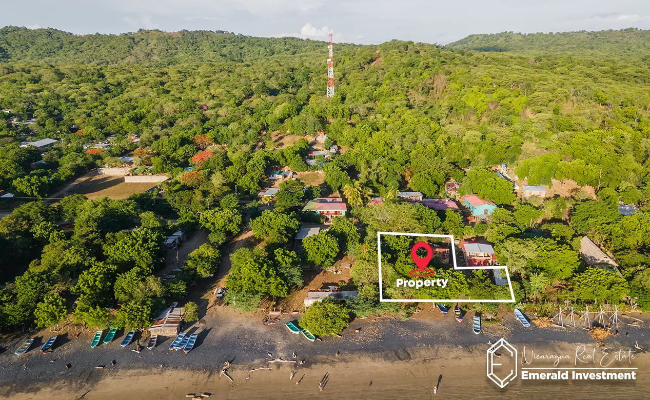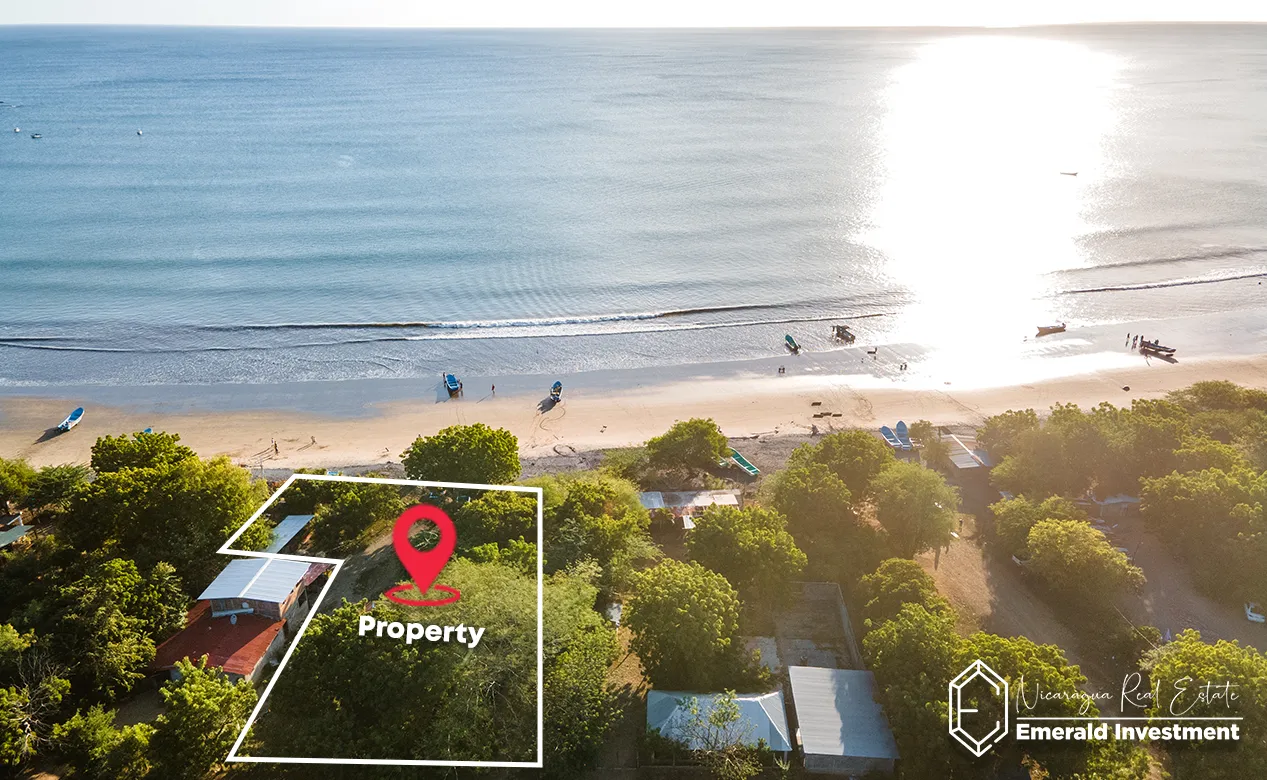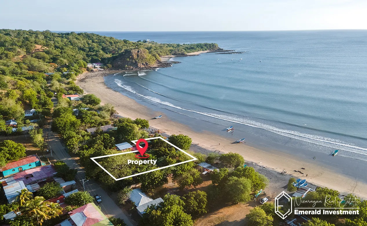 Ownership is arriendo (municipal lease), which is standard for most beachfront properties in Nicaragua and allows for legal use, development, and long-term operation.