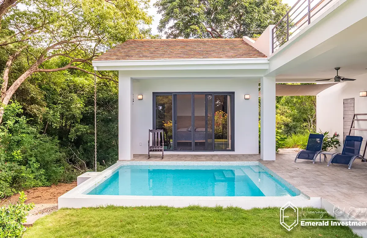 Welcome to Casa Tranquila, a serene and stylish 3 bedroom, 3.5 bath set on an expansive 6,058 m² lot in the prestigious Rancho Santana community of Tola, Rivas. Designed for those seeking privacy, comfort, and a true connection to nature, this home blends upscale living with the peaceful rhythms of Nicaragua’s Emerald Coast.
