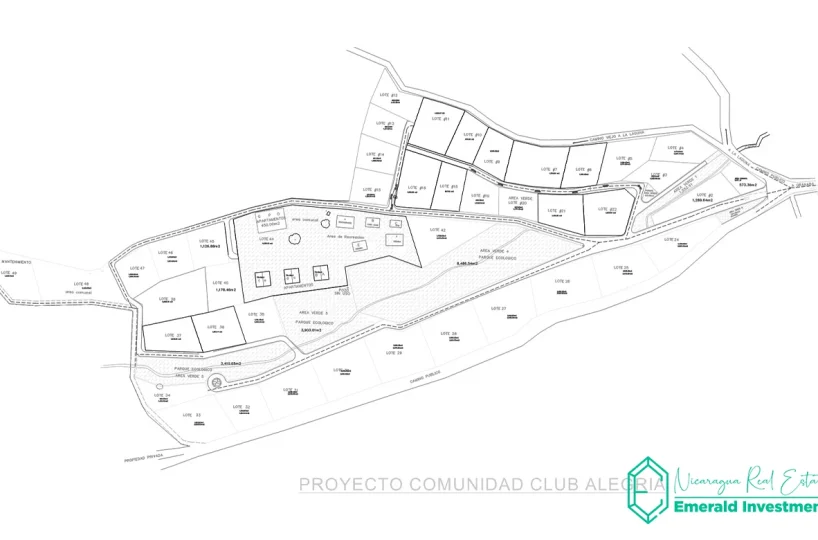 Club Alegría is a 94,924-square-meter planned residential development that consists of 48 residential homesites, 3 built townhomes, and a communal area that includes a built-out restaurant and pool. There is also an additional 102,722 square meters of land at the back of the project that is included with the sale.