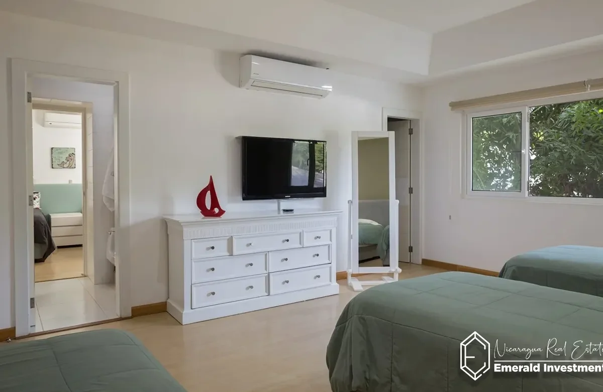 - Luxurious Bedrooms: Casa Serena offers 5 beautifully designed bedrooms, including 3 master suites. Each master suite features a king-sized bed, ensuite bathroom, walk-in closet, and private balcony with ocean views. Two additional bedrooms are ideal for younger guests with single beds and air conditioning.