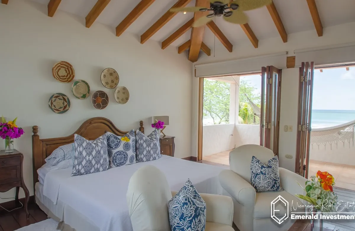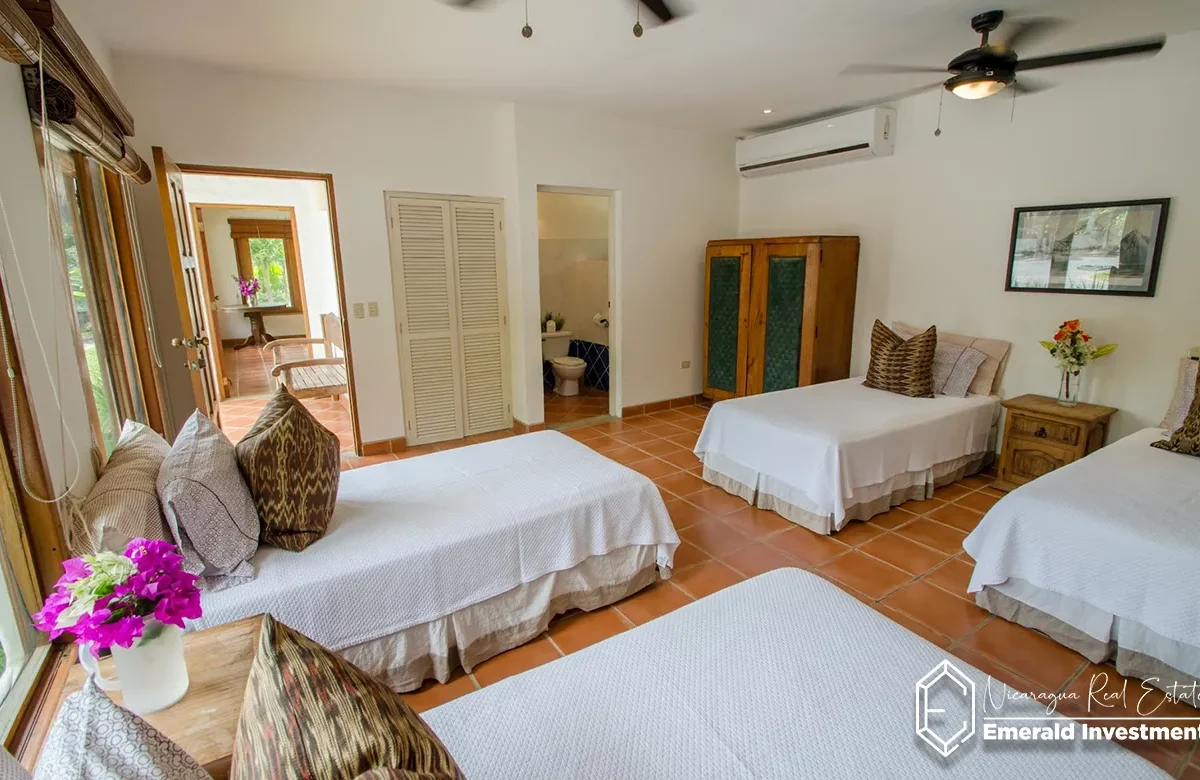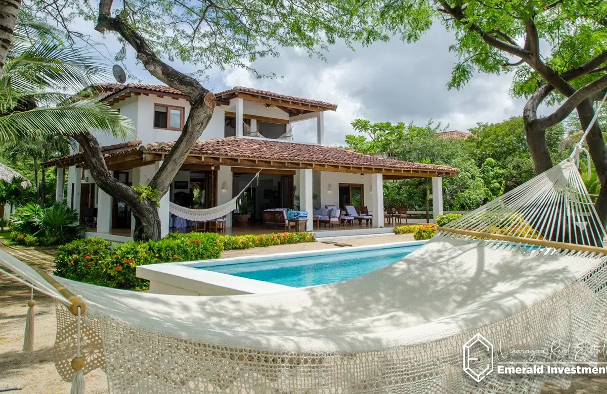 Casa Encanto is a stunning 5-bedroom, 5-bathroom beachfront villa located in the exclusive Hacienda Iguana community along Nicaragua’s Emerald Coast. Designed with a perfect balance of modern comfort and traditional Nicaraguan charm, this spacious villa accommodates up to 10 guests, making it an ideal retreat for families, groups, or surf enthusiasts.