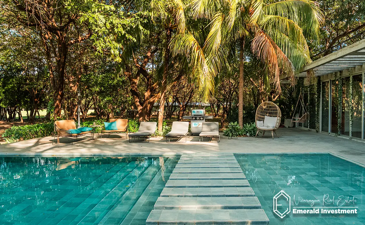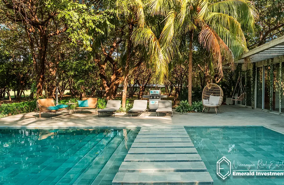 Casa Teka is a refined expression of sustainable luxury, thoughtfully designed to blend contemporary comfort with Nicaragua’s lush natural beauty. Located within the prestigious coastal community of Hacienda Iguana, this exceptional single-level villa offers privacy, architectural elegance, and proximity to some of the country’s best surf and golf amenities.