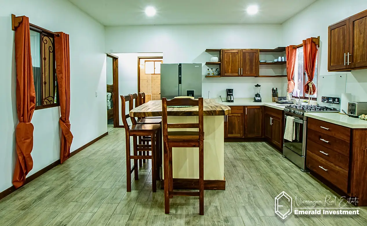 Welcome to your own tropical escape in Cuesta Bella, San Juan del Sur. This modern 2 bedroom home sits on a 1,231.56 m² lot surrounded by lush jungle and vibrant wildlife, just five kilometers from town and the beach. Designed for those seeking peace, comfort, and a touch of adventure, the property blends contemporary living with the beauty of nature.