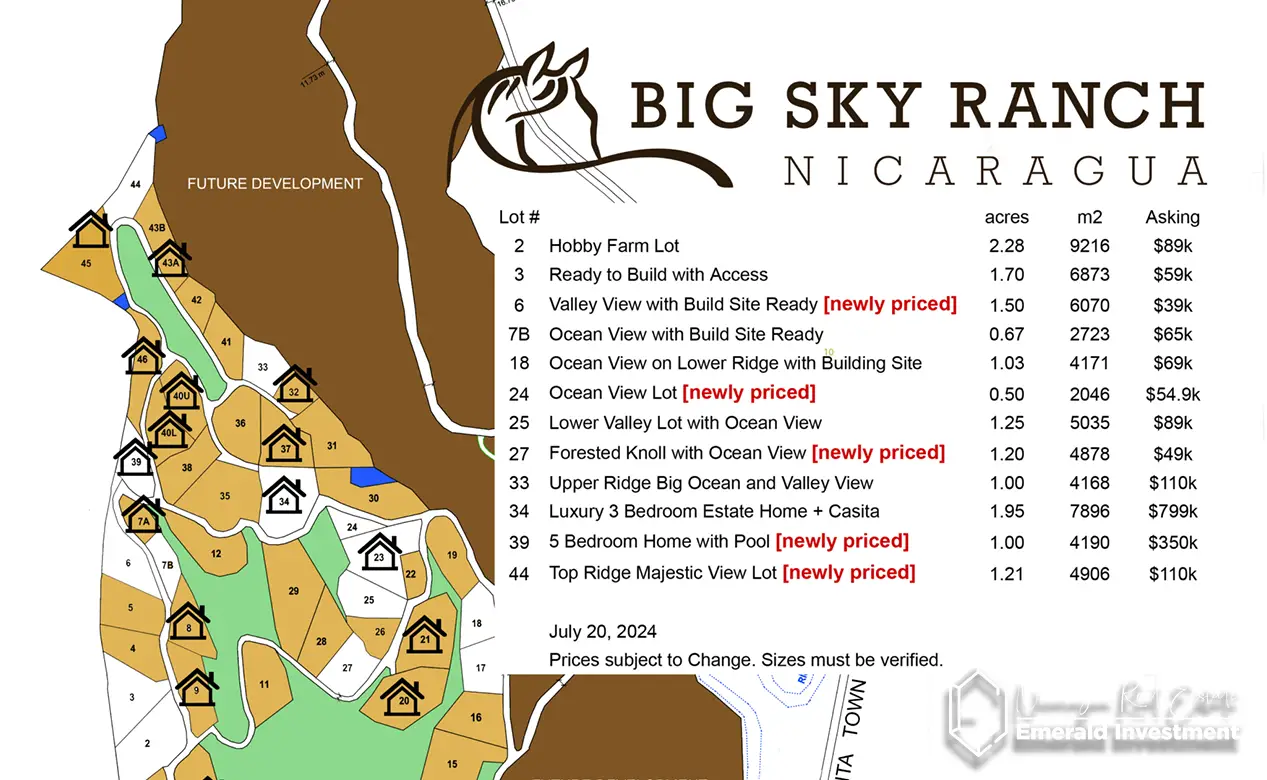 Located within the prestigious Big Sky Ranch community, this Mountain and Ocean View Lot provides access to over 300 acres of meticulously maintained stables, charming neighborhoods, and expansive riding trails. Big Sky Ranch stands as the only equestrian community in southern Nicaragua, offering unique amenities such as horseback riding lessons, guided tours, and premium boarding facilities for equestrian enthusiasts.