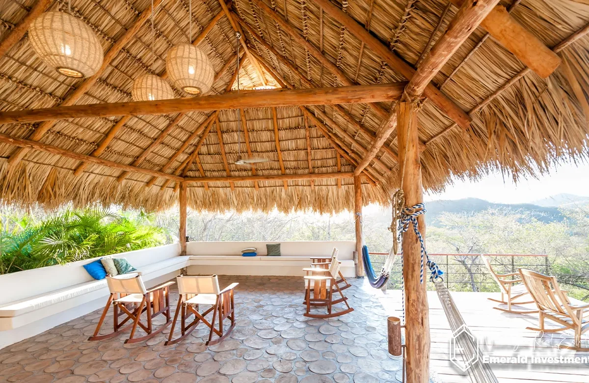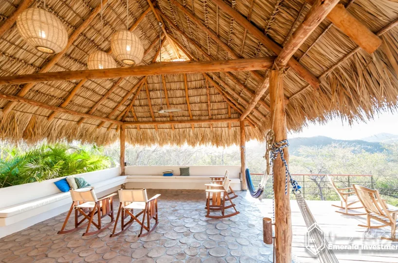 With multiple inviting spaces including a palm-covered palapa ideal for hammocks or yoga, and a private lap pool overlooking the Pacific Ocean. From the terrace, enjoy the sights and sounds of howler monkeys and tropical birds as the sun sets over the water.