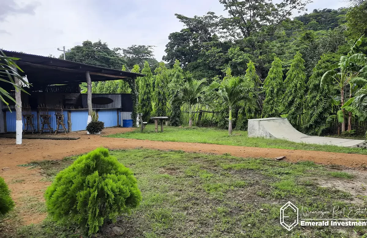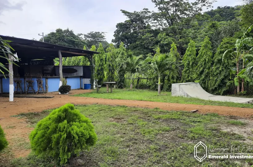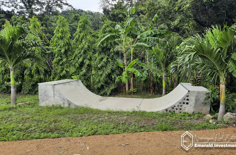 There are several outbuildings in this Surf Camp in Popoyo that can be utilized for hostel style dormitory housing and entertainment/gathering spaces, two bathrooms, a pool, a skate ramp, and an adorable bungalow with loft that would be perfect for an owner occupant. The grounds have been landscaped beautifully and include multiple fruiting trees – this area being perfect to use as a ‘campground’ for your future paying guests.