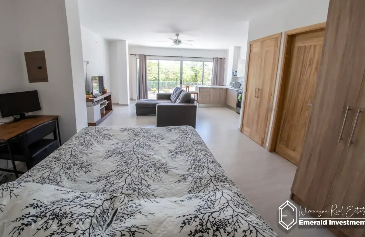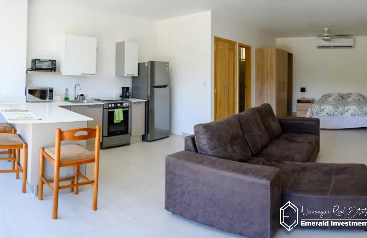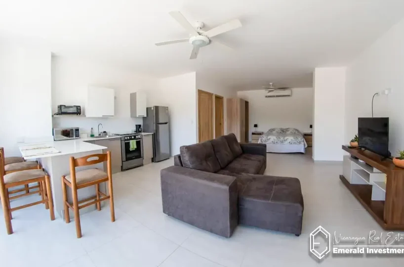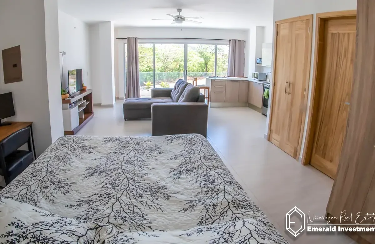 Discover this charming open-plan studio apartment located just 200 meters from the beach and a 5-minute walk to downtown San Juan del Sur via the scenic beachfront. Situated in the well-maintained Plaza La Talanguera Condominium, this 51 m² unit offers comfort, convenience, and income potential – perfect for living or short-term rental.